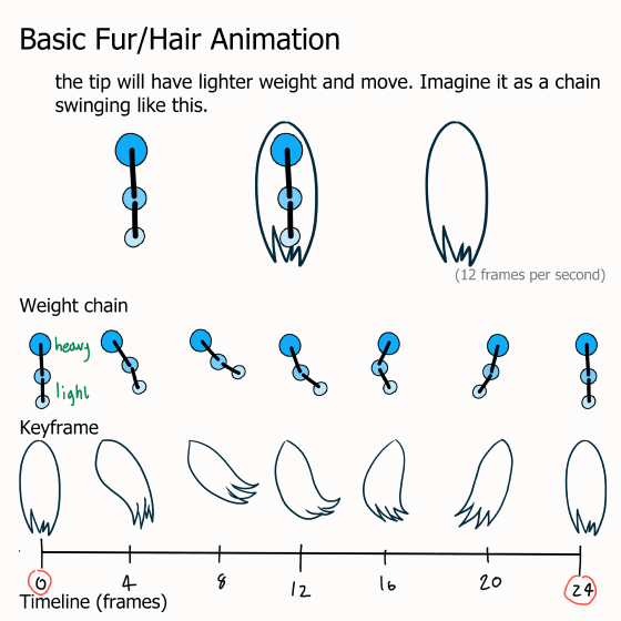 이 과정이 반복되면 천이나 머리카락이 자연스럽게 ‘흘러가는 듯한’ 느낌을 주게 됩니다.