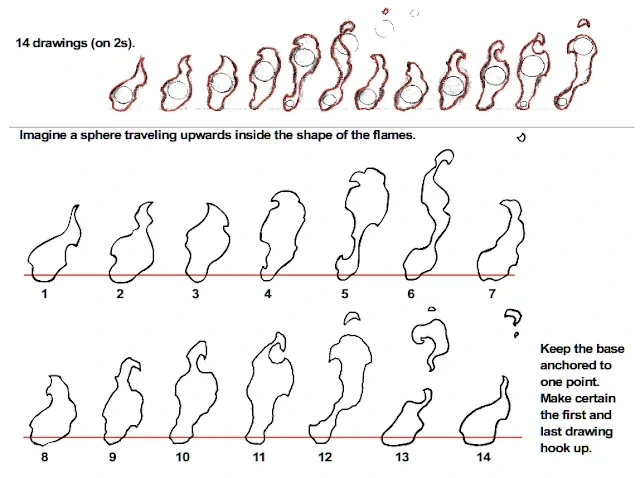 불꽃이 공간 속에서 ‘부풀고, 휘고, 일렁이는’ 동적 질감을 갖도록 만드는 기법입니다.